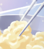 젓가락으로 빠르게 저어 완전히 굳기 직전에 불을 유지한다.