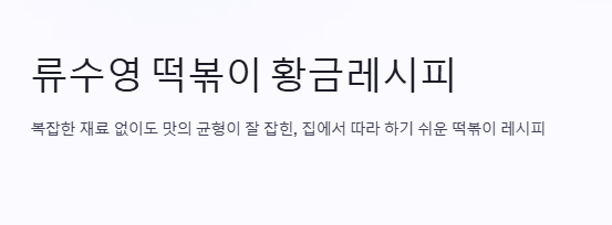 - 류수영 떡볶이 황금레시피는 비율과 순서가 명확한 정보형 레시피다.