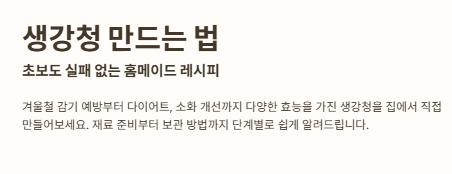 생강청은 겨울철 감기 예방부터 다이어트, 소화 개선까지 다양한 효능으로 많은 사람들이 찾는 인기 건강음료입니다. 하지만 막상 직접 만들어보려고 하면, 양 조절은 어떻게 해야 할지, 생강은 껍질을 벗기는 게 좋은지, 설탕 비율은 정확히 어느 정도가 적당한지 고민이 많아집니다.