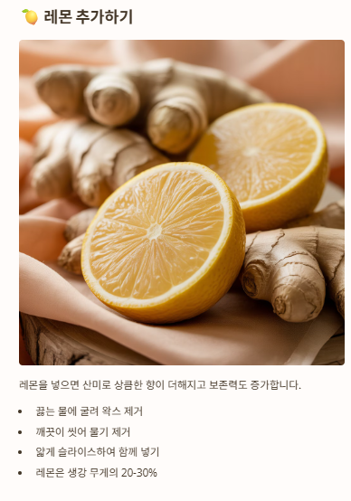 - 끓이지 않는 생강청은 편으로 썬 방식이 향 손실이 적습니다.