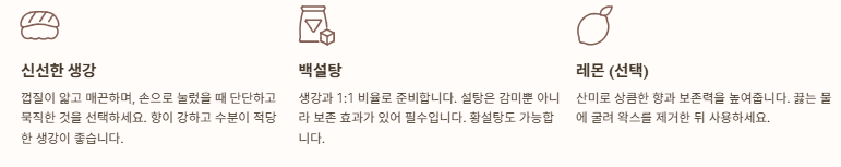 단 3가지 재료만 있어도 충분히 깊은 풍미의 생강청을 만들 수 있습니다.